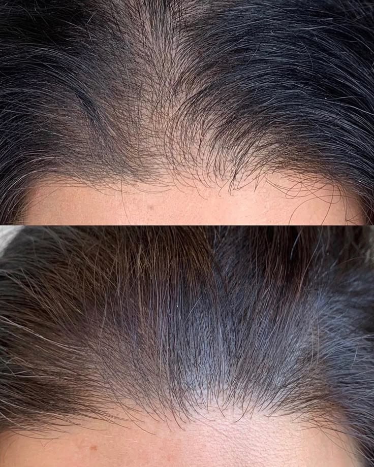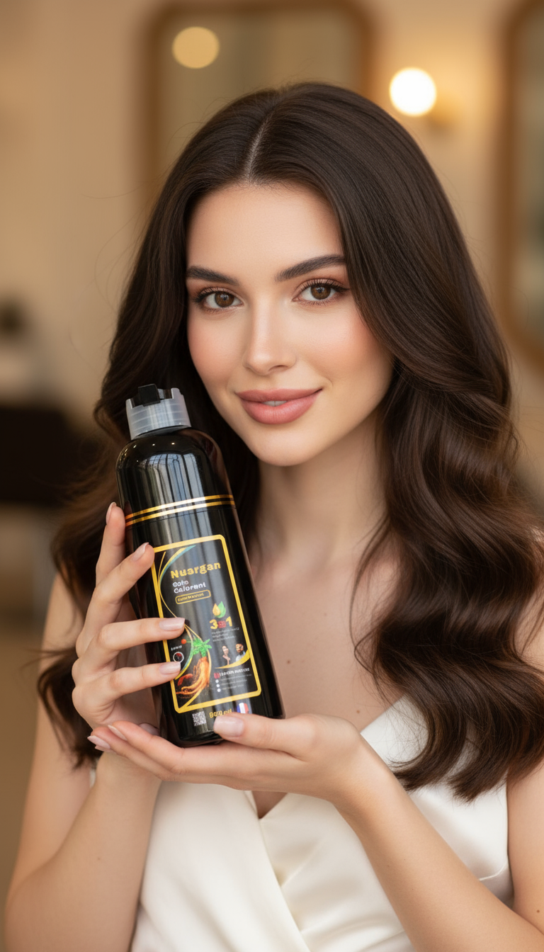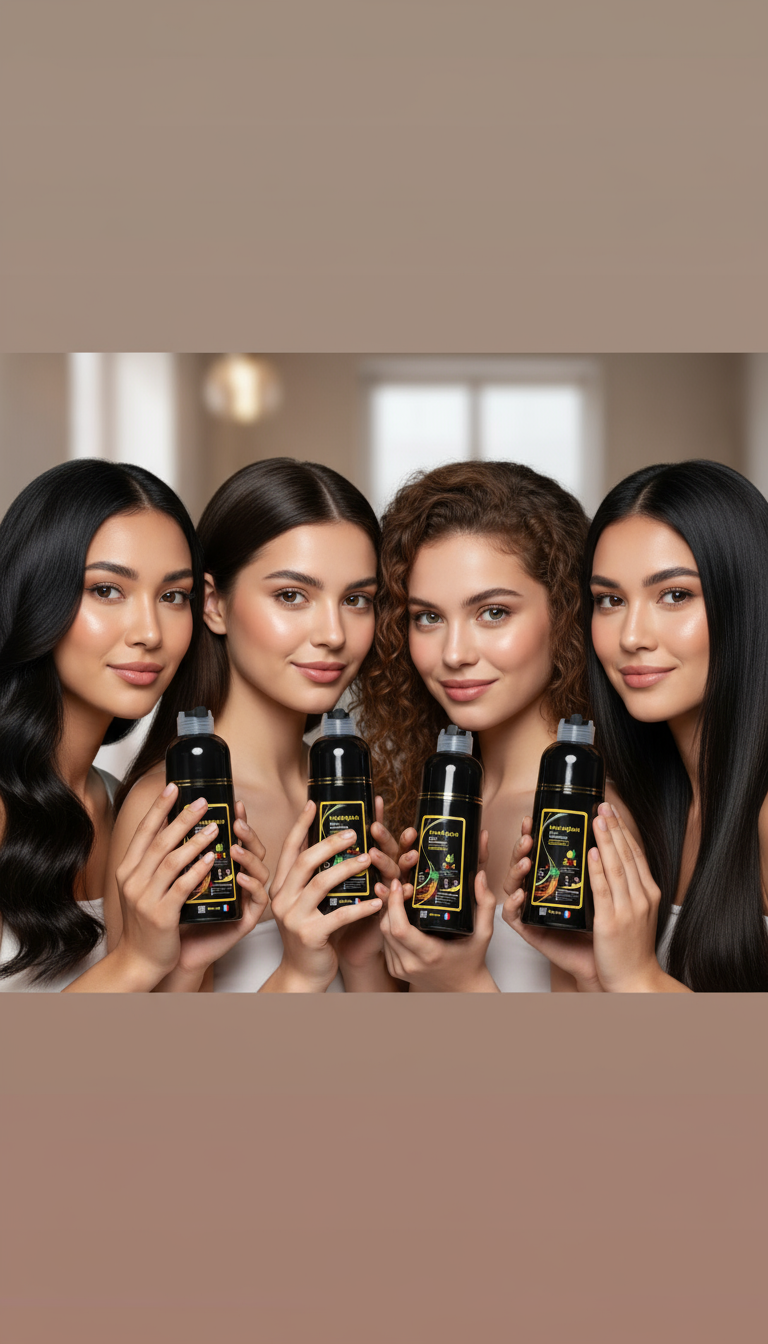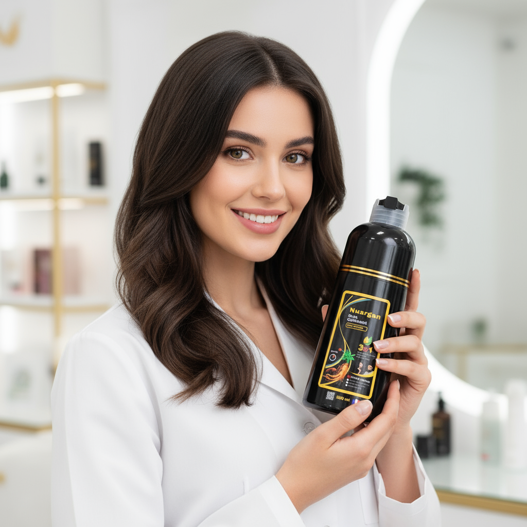 L’huile de sésame noir et l’extrait de gingembre stimulent le cuir chevelu, fortifient les racines et favorisent une pigmentation riche et durable.